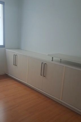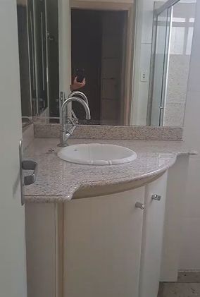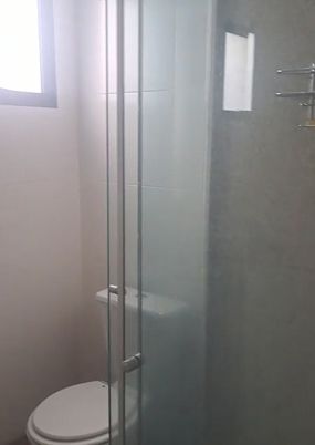 🚿 Banheiro social completo com armário, espelho, box blindex e ótimo acabamento.