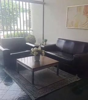🚗 Vaga de garagem automatizada e recepção aconchegante com sofá de espera.